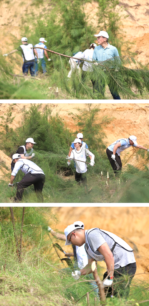 尽管第一天的活动比较辛苦,但志愿者们的热情却丝毫不减。第二天一大早,他们便赶往了蜂虎鸟栖息地。在那里,海口畓榃湿地研究所卢刚所长向志愿者们介绍了蜂虎鸟的生存状况,大家了解到它们对筑巢环境的要求极高,便主动请缨进行清理杂木的工作,为蜂虎鸟们的整洁家园贡献自己的力量。