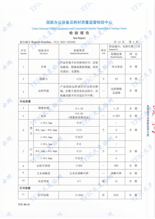 近日,奔图委托国家办公耗材质量监督检验中心(天津复印机研究所)对Pro 06系列适配的PD-206硒鼓进行检测。从本次检测报告来看,奔图的原装硒鼓参数都优于国家标准要求。下面就用数据说话,来为大家多维解读奔图原装耗材的优势到底在哪里。