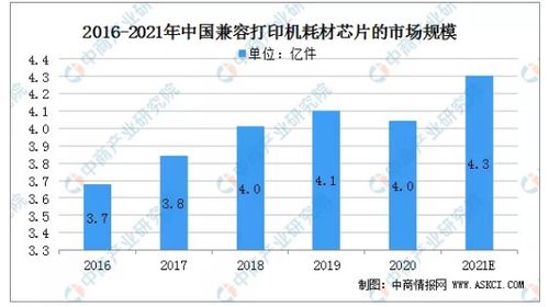 数据显示,2016年中国兼容打印机耗材芯片销量达到3,7亿件,2020年出现疫情及企业并购重组行为,销量略有下滑,预计2021年销售上升至4.3亿件。