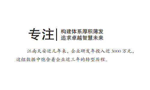作为以国家商用密码技术为核心、向客户提供整体应用解决方案的密码体系服务商;以多层次的密码产品、技术服务和整体应用解决方案,构建技术支撑体系、产品体系、应用体系、服务体系、管理体系以及合规体系,广泛满足 各类行业用户对密码安全的需求。目前,企业已经与国内多家云服务商建立了战略合作,成功为云租户提供云加密产品和技术服务。自此,江南天安完成了第三个阶段的企业转型和蜕变,将企业精准定位为“密码体系服务商”。 在一系列的蜕变和荣誉背后,以邓小四为核心的管理团队领导下的江南天安,深知捍卫 国家信息安全任重道远,企业必将继续努力,充分利用自身优势,为用户信息安全保驾护航。作为一个企业掌舵者,邓小四认为坚持投入研发是安全企业得以生存和发展的根本,而坚守在安全一线保卫网络空间安全,是他创业的初心。