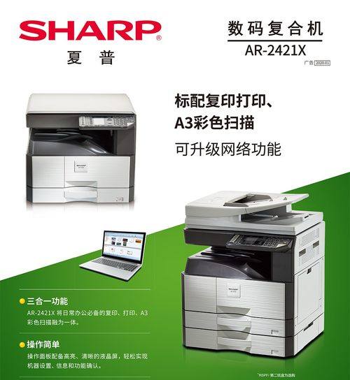 编辑推荐:夏普AR-2421X黑白复合机,功能设计完善,打印后期成本可控,并且有丰富配件可选,可以满足用户不同的应用需求。让用户可以享受到物超所值的服务。