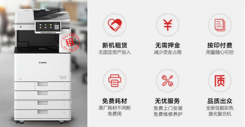 佳能打印无忧租赁服务采用佳能多功能A3彩色复合机,黑白彩色、复印打印,一台就够
