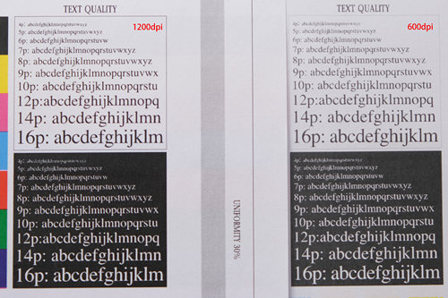 再来看一下文档的打印效果,在KDY样张的白底黑字中最小4p字体都可以清晰可见,从文档整体效果上看,字迹清晰,纸张空白处也没有浮粉,能保证纸张干净。打印过程中也没有闻见特殊的气味,可见在定影效果上还是下了很大功夫的,保证打印质量的同时,还做到了环保。