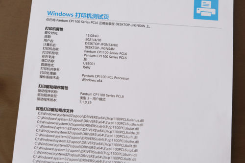奔图CP1100采用的是陶瓷加热的方式,这种方式的优点是可以快速升温缩短打印启动时间,试用过程中奔图CP1100的彩色首页打印时间为11秒左右,打印18页文档所用时间约为1分钟,与官方标称相差不大。
