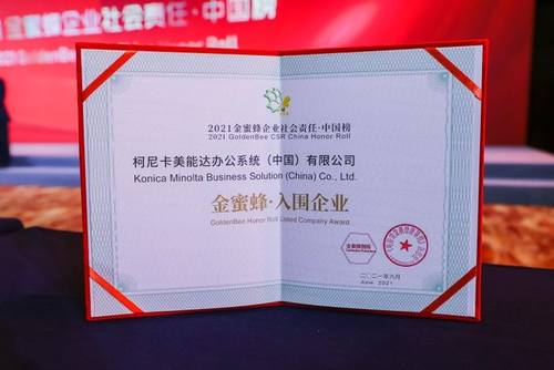 全球领先的数字化整合增值服务商——柯尼卡美能达凭借具有前瞻性的绿色经营理念,以及落实在产品研发、生产与销售等各个环节的可持续发展举措,从300余家国内外参选企业中脱颖而出,继2020年后,再次入选“金蜜蜂企业社会责任·中国榜”。
