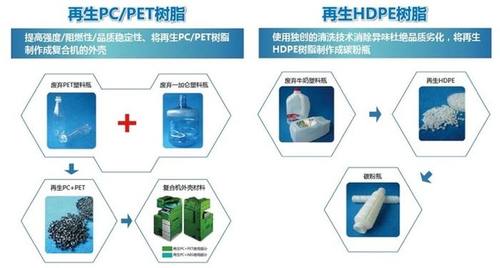 柯尼卡美能达为响应绿色产品认证制度,积极研发绿色产品,从产品层面最大限度地为客户和社会减轻环境负荷。柯尼卡美能达始终致力于探索再生材料的应用,譬如:凭借自身的技术,将废旧塑料升级再利用,利用再生PC/PET树脂,打造复合机的机身;利用废牛奶瓶,加工成再生HDPE树脂制成碳粉瓶。