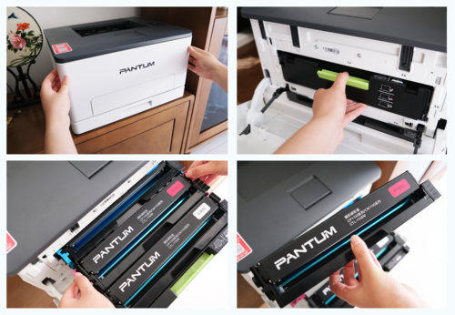 而耗材方面,该机则采用了鼓粉一体式的设计,拆卸非常便捷。目前,该机提供了黑白1000页彩色700页、黑白2000页彩色1500页、黑白3000页彩色2300页,三种耗材搭配装,用户可以根据自身的情况选择合适的耗材组合。