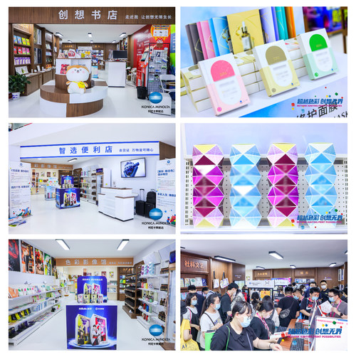 柯尼卡美能达在展区现场还精心打造了三大样品体验区——“创想书店”、“智选便利店”、“色彩影像馆”,旨在通过趣味生动的场景互动,充分展现柯尼卡美能达数字印刷产品、创新技术及数字印刷解决方案在包装、标签、海报、艺术品复制等诸多领域的多项创新应用,为莅临现场的观众呈现了沉浸式数字印刷盛宴。