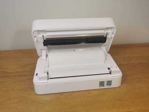 机身内部打开可以看见出厂就安装好的热敏打印卷纸,纸卷的安装更是简单,一眼就能看懂,方便那些对科技产品向来不敏感的人操作。