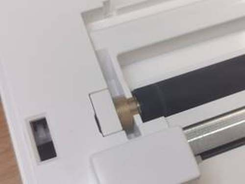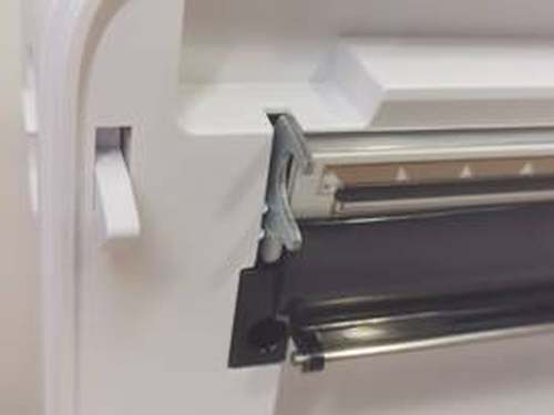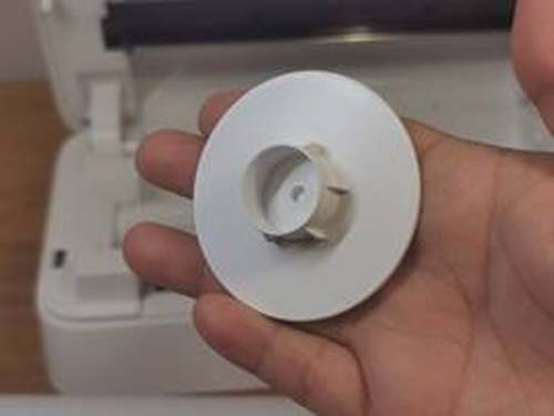 卷纸能轻松的拿出来,两侧的纸卷轴也能随意拆开。打印纸耗材更换就如下图,两侧的卡扣拿下即可。
