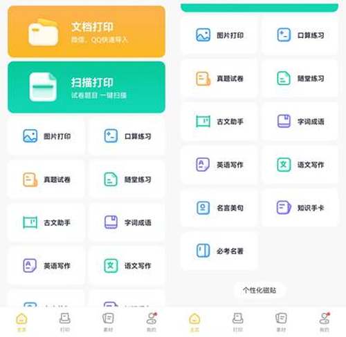 我们都知道喵喵机是作业帮旗下的硬件品牌,因此内容方面就是绝对的优势,它内置了作业帮3亿+题库,涵盖了小学、初中、高中海量教材,能用手机直接在线就可以快速打印学习内容,比如语文学习、外语学习、口算练习题、英语生词本等一应俱全,甚至集合了全国的真题试卷、随堂练习、等资料,对于家长们来说,99%解决了需要去网络上给孩子找学习资料的麻烦。
