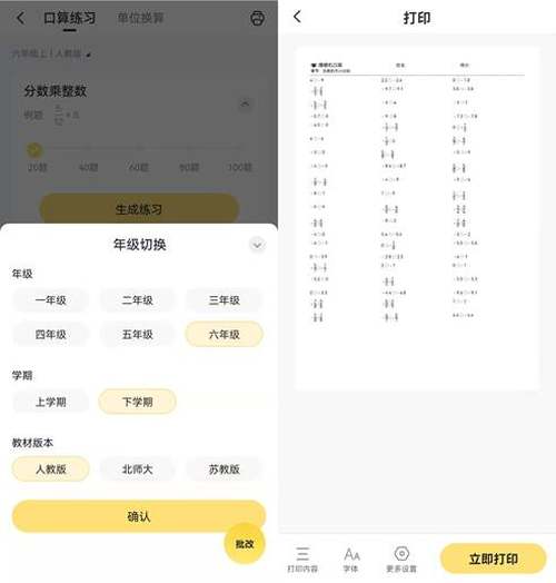 在打印中我们以数学为例,选择了六年级下班学期北京人教版的教材作为打印测试。