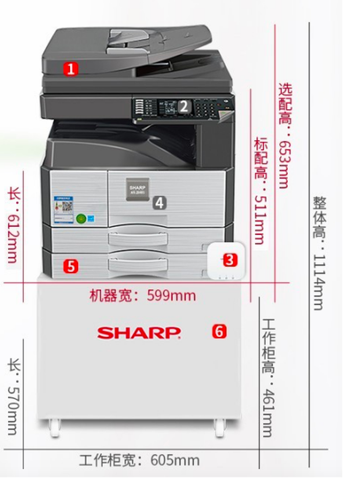 虽然这款复合机主打性价比,但无论是配置还是功能都是可圈可点的。这款机型的配置一直沿用全钢架设计,简单易用一体式的理念,操作起来简单快捷。人性化的是,定制的工作柜更符合人体取纸高度。