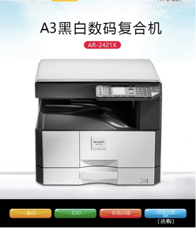【IT168 行情】夏普作为打印机行业里的经典品牌,一直立志于研发多元实用化,不断创新的推出各种类型的电子产品。其中AR-2421X复合机就是一款实用的多功能一体机。
