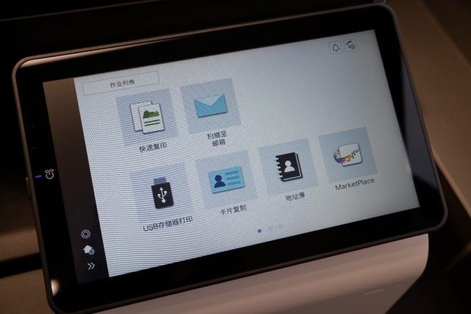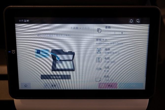 ineo 550i所配备的这块10.1英寸触摸屏幕集合了丰富的管控功能。在具体的功能页面上,ineo 550i设计成为了卡片式的交互界面,简单来说就是以卡片的形式将一个功能完整地呈现在一个页面上,这样的设计可以让用户快速完成单一功能的设置、使用,避免频繁的功能设置切换,最大化降低了产品的操作使用难度。用户仅需要通过简单的点击操作就可以实现流程的文印工作体验,免去了之前复杂的按键操作流程。