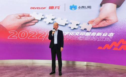 柯尼卡美能达董事长兼总经理中田裕司先生在签约仪式现场表示:“当下,企业用户在办公文印管理、IT设备租赁及回收等涉及IT设备全生命周期管理方面的需求日益增多,且呈现出多元化、数字化以及个性化的特征。基于‘焕赋智能商务Powering smarter business’的全新品牌理念,DEVELOP德凡将着力为用户提供能够促进其业务效率化的服务模式,进而更好地助力其实现数字化转型。DEVELOP德凡与小熊U租此次达成战略合作,双方将藉此充分发挥各自的核心优势共同为企业用户提供涵盖文印管理、IT设备租赁&回收、融资的‘办公资产全生命周期管理解决方案’,助力用户加速构建数字化文印新生态。”