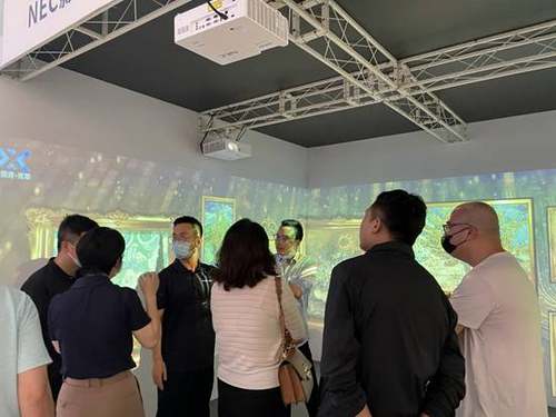 品鉴会现场,多款NEC影院生态方案重磅亮相,其中最引人注目的当属由NEC骑士系列激光短焦投影机CS5500HL带来的沉浸式剧本杀,低成本更酷炫的呈现效果为“影院+剧本杀”模式提供借鉴参考。利用影院的场地优势,引入“剧本杀”网红业态,通过投影技术实现场景模拟,打造沉浸式剧本杀探案馆,为影迷创造全新文娱体验,为影院拓宽多元化收入渠道。NEC骑士系列CS5500HL拥有5000流明高亮度,1080P全高清分辨率,0.8投射比,通过融合投影打造的超大画面沉浸式CAVE空间氛围逼真,立体环绕声与酷炫光影多重视听元素交织,酷炫无比的视觉冲击效果、身临其境的沉浸体验,令现场嘉宾耳目一新、惊叹不已。