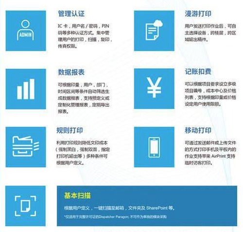据了解,派睿(Paragon)文印管理解决方案,针对企业用户日常办公所遇到的多种问题,设计了7大模块内容,内容涵盖了企业用户使用、报表和计费三大核心问题,从我们常说的印前、印中到印后,提供了丰富高效的管理方案,这对于企业构建数字化办公流程,获得更好的文印应用体验,打下来坚实的基础。