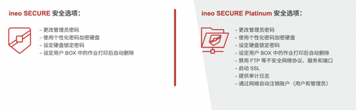 其次ineo SECURE了解客户的具体安全需求,在方案中推出了多种安全选项。例如可以为管理员设置密码,并提供更改服务。用户可以使用数字+大小写字母组合形式,来提升密码级别,提升保证安全系数,确保文印设备的使用安全。
