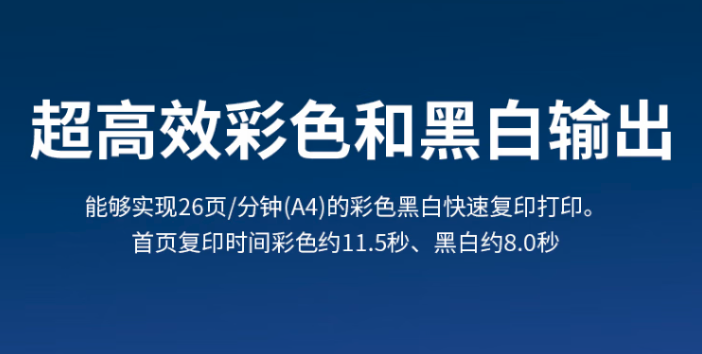 黑白输出速度同样达26页/分钟,首页输出仅需6.4秒,应对大批量文档游刃有余;