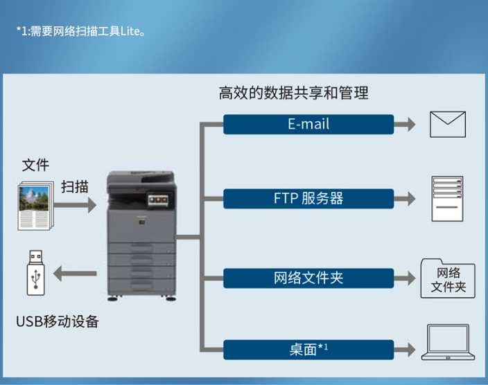 扫描至SMB/FTP网络文件夹:自动归档至部门共享盘,实现无纸化协同;