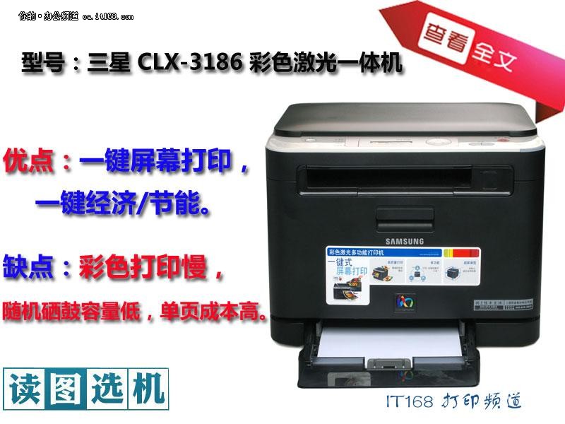 三星 CLX-3186除了常规的打印、复印和扫描等功能外,还额外提供了一键屏幕打印、一键经济模式、一键节能模式等多种创新设计,让入门级彩激产品向“实用性”方面前进了一大步。