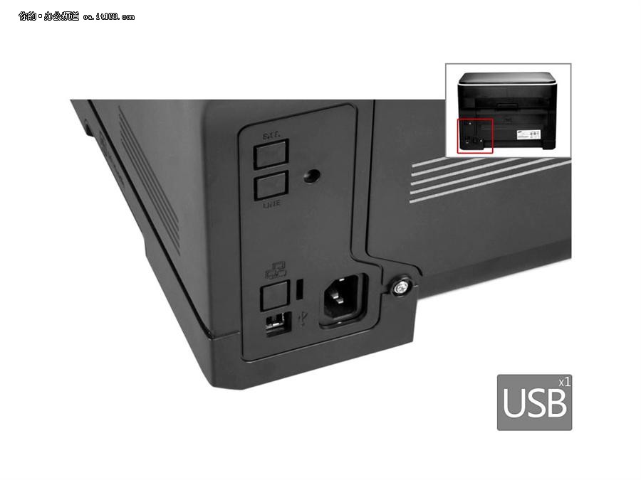 采用USB端口,电源线接口和USB接口都在机器背部。