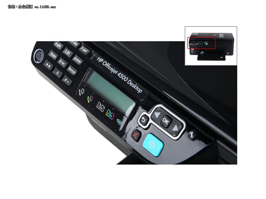 OJ4500的控制面板位于机身正面,略向下倾斜的角度更符合人体工学原理,便于用户查看和进行操作。
