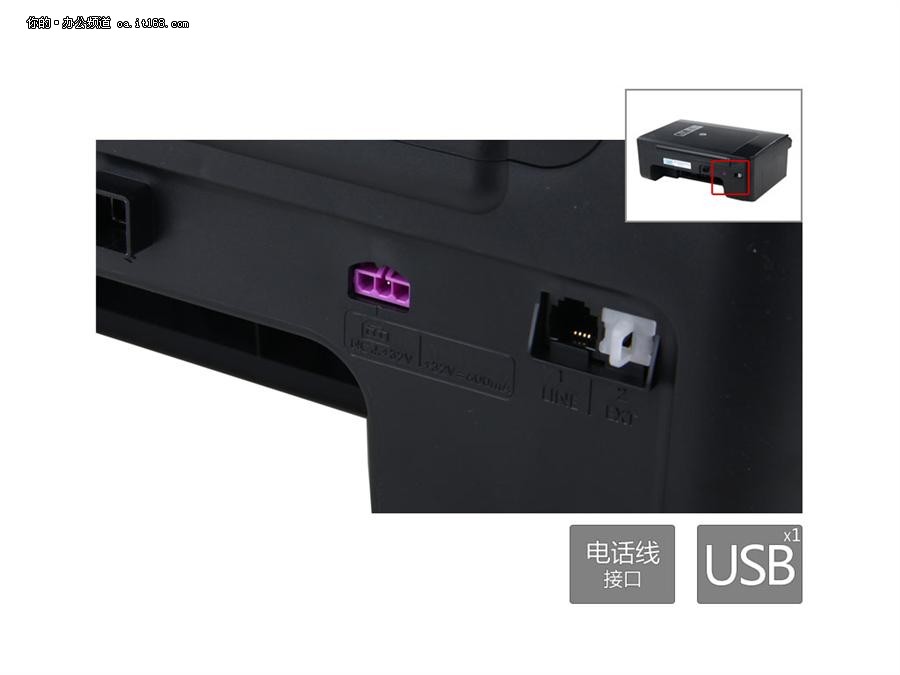 OJ4500标准版的主要接口位于机身背面右侧,集中的设计便于布线和捆绑。