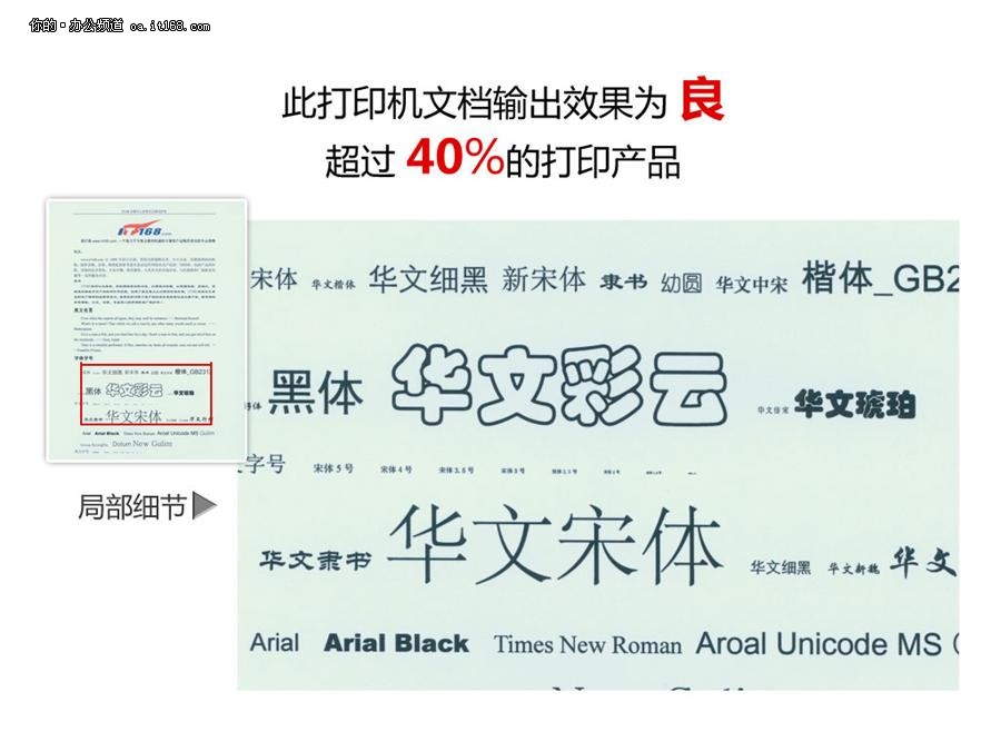 整体样张黑度充足,笔画清晰有力,表现出了不输给激光打印设备的输出品质。
