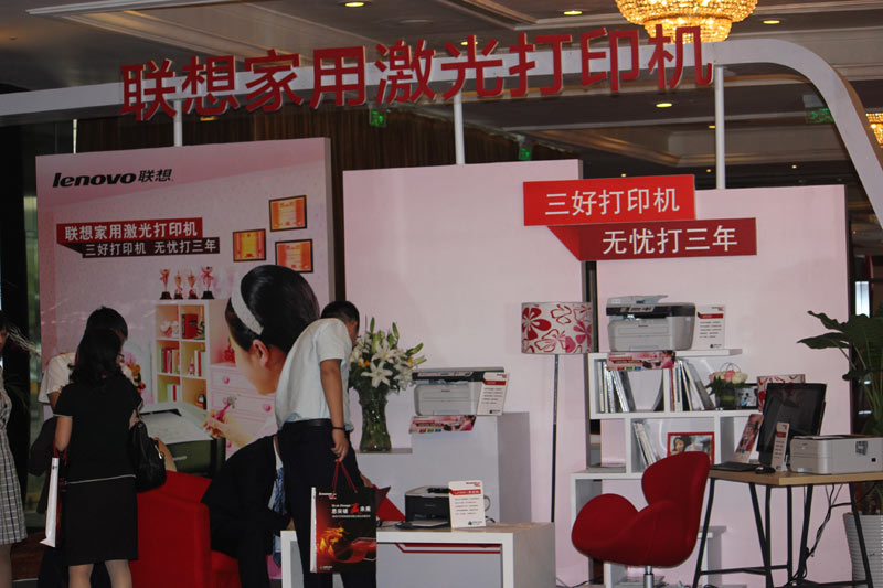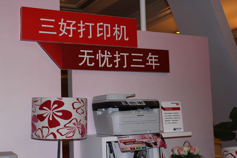 联想发布会现场家用激光打印机展区,并且针对家庭应用场景进行了精美的布置,能够让参加此次活动的人员更加清晰的了解该展区的产品定位。本次发布会共推出了联想家用激光打印机LJ1680家庭版/联想LJ2200L/联想M7205/联想M7250四款“三好打印机”。