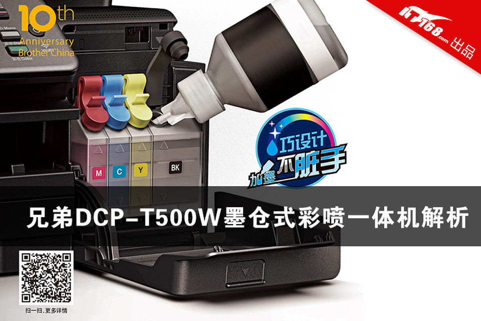 2015年7月15日,兄弟在上海环球港召开了“巧设计 加墨不脏手”Brother喷墨新品发布会。共推出了4款内置墨仓式彩色喷墨多功能一体机,该系列专为中国用户定制,采用墨仓式设计,支出官方灌墨,大幅度降低了日常彩打成本,我们这次测试就是其中一款DCP-T500W彩喷一体机